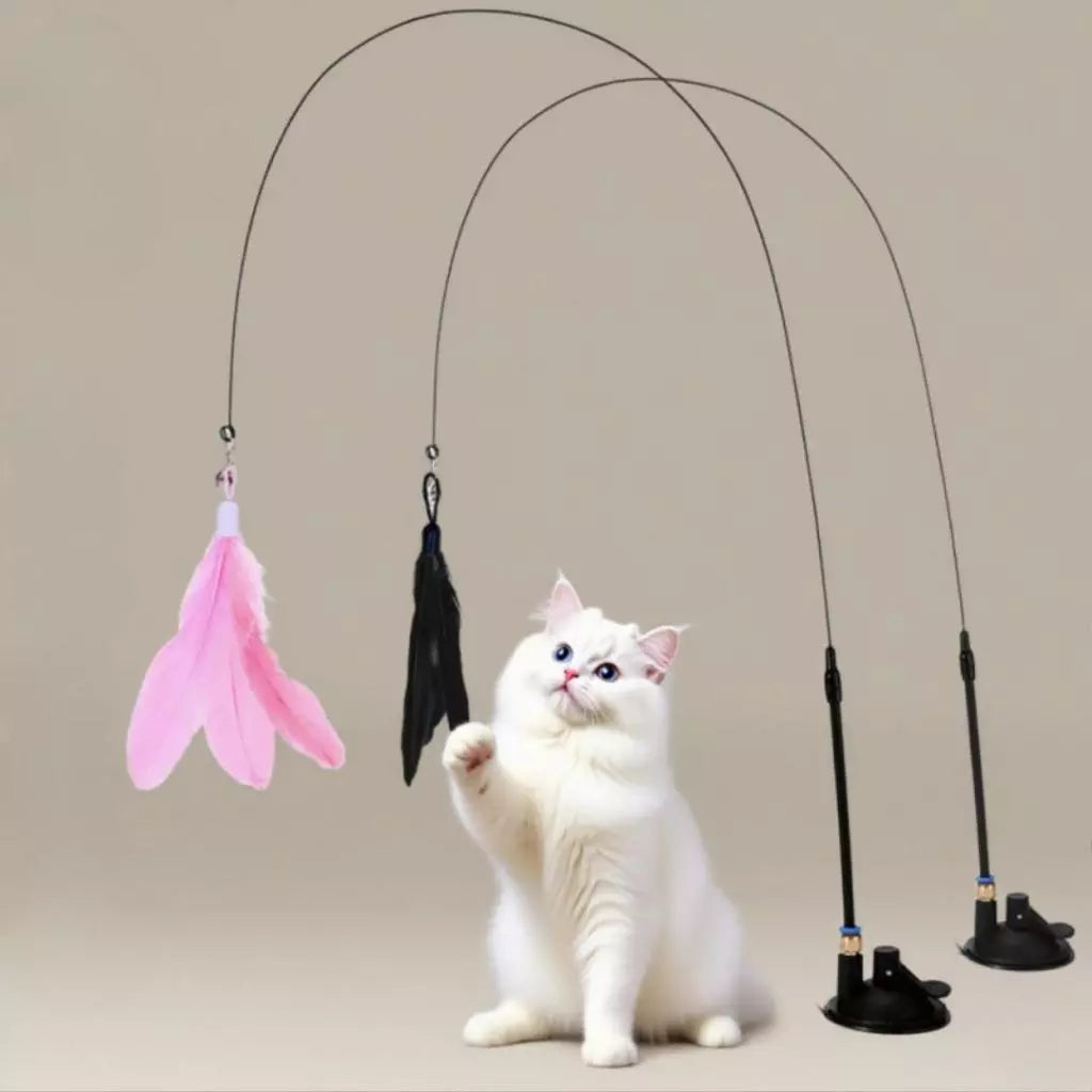 Designed with a strong suction cup base, it easily attaches to any smooth surface like floors, walls, or windows, allowing your cat to chase, jump, and bat at the colorful feathers for hours of fun.